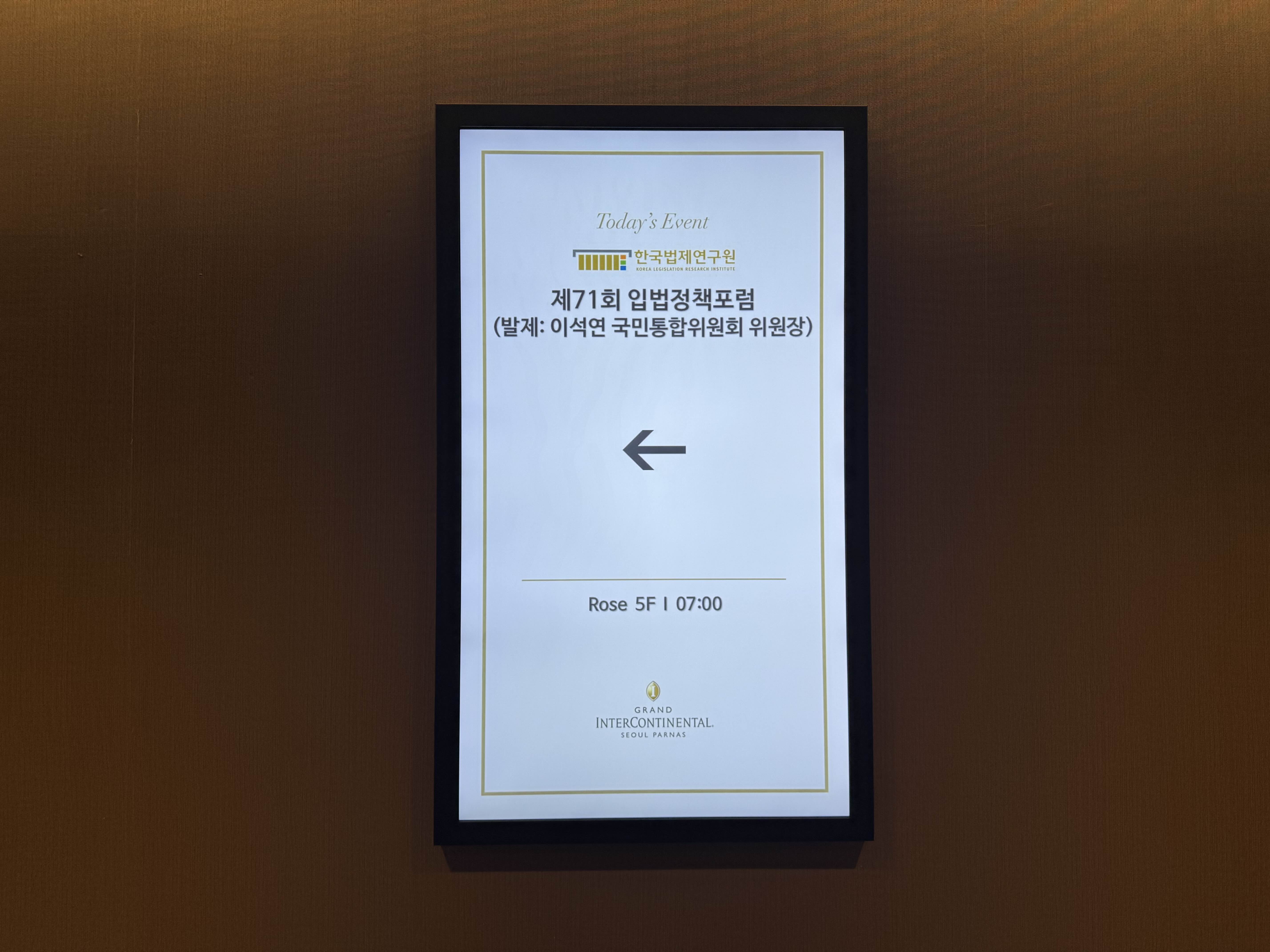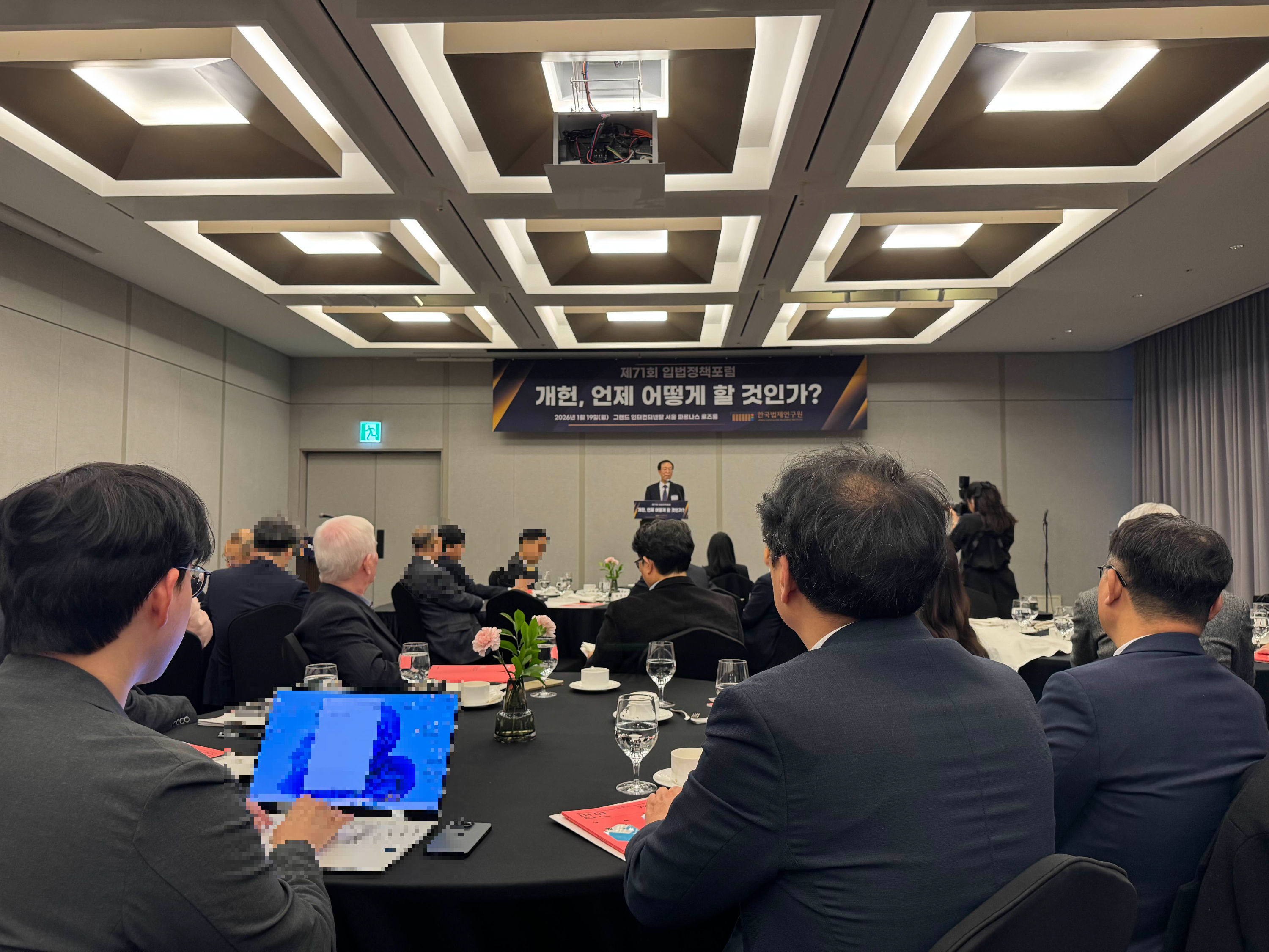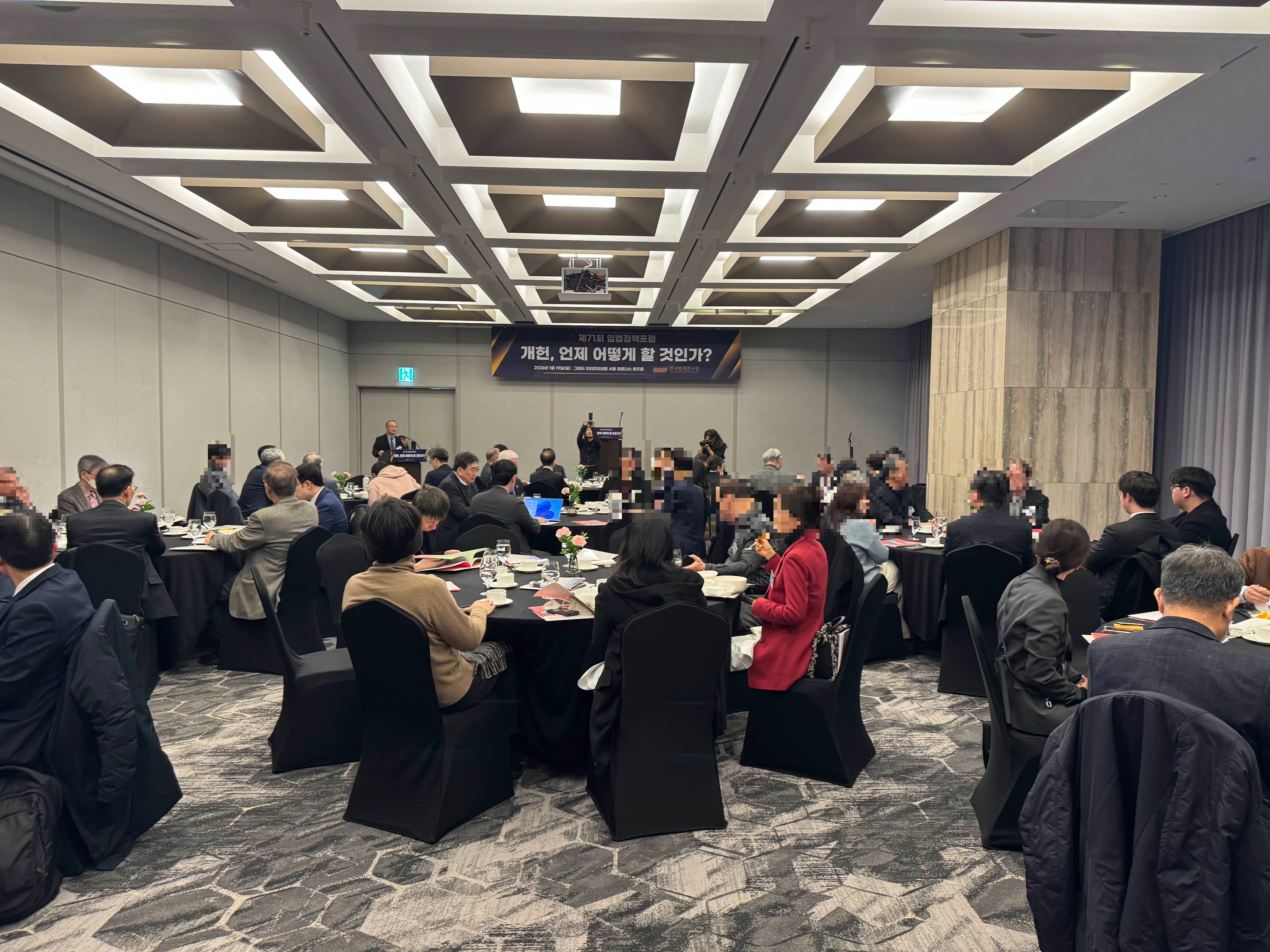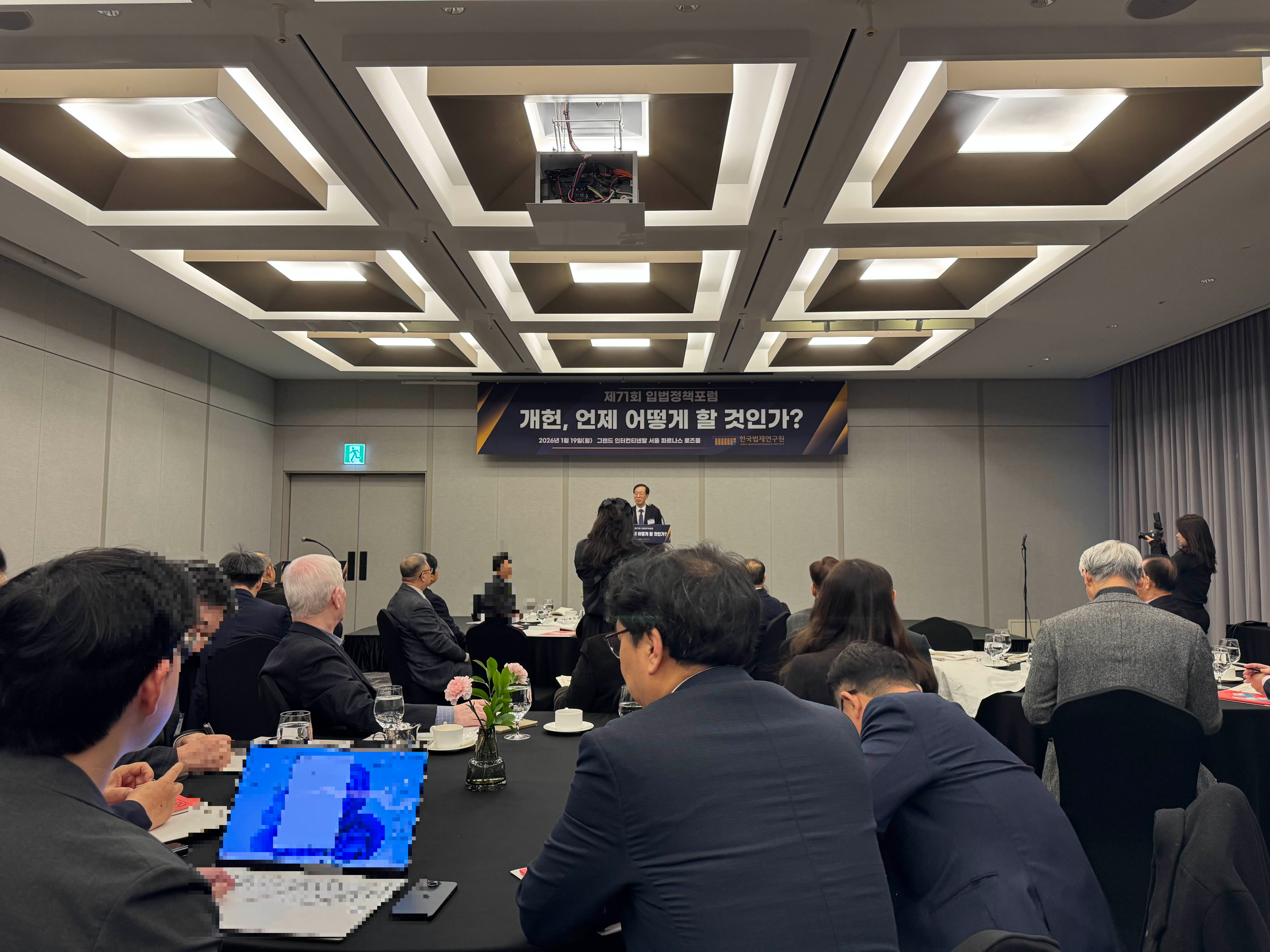 2026년 1월 19일(월) 오전 7시 40분 그랜드 인터컨티넨탈 서울 파르나스 5층 로즈룸에서 제71회 입법정책포럼이 개최되었습니다.